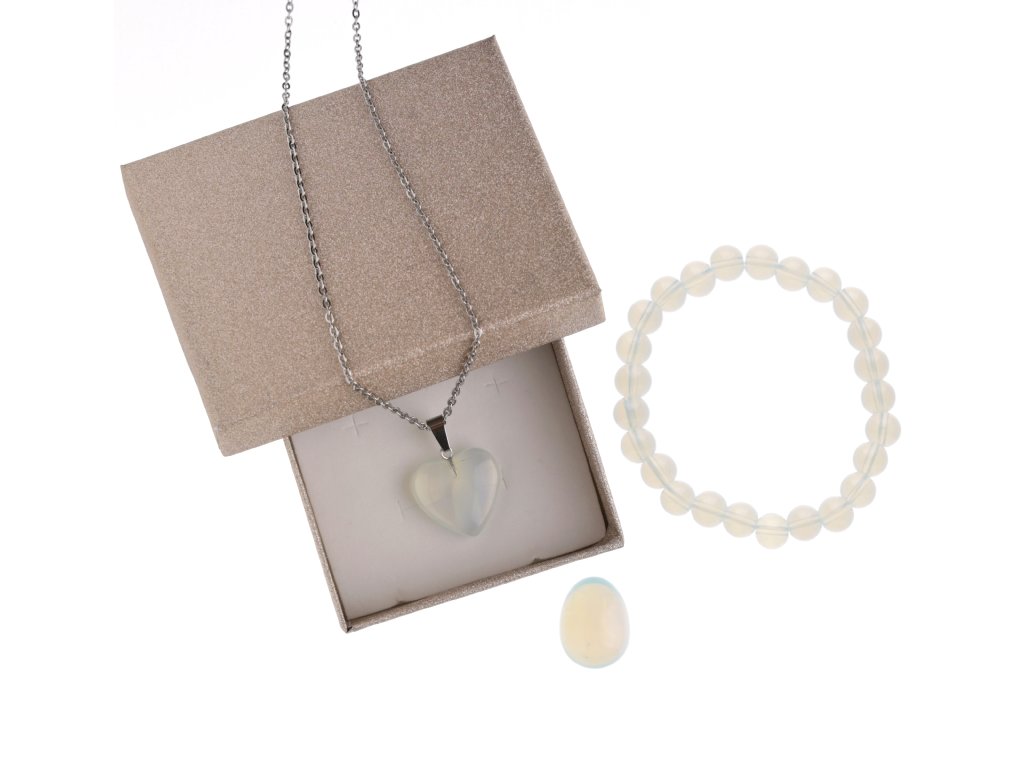 Sila kameňov – darčekový set z mesačného opálu, mystického kameňa jemnej krásy a ženskej energie. Tento minerál je po stáročia spájaný s ochranou, intuíciou a citlivosťou. Pomáha rozpoznať skryté emócie, vnímať hlbšie vrstvy vzťahov a prináša pokojné, svetlé vibrácie do každodenného života. Opál je ako nežný sprievodca pre tých, ktorí túžia po vnútornom vedení a harmónii.